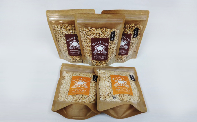 栽培期間中農薬不使用の若狭町産の玄米・米を使用したポン菓子のセット。