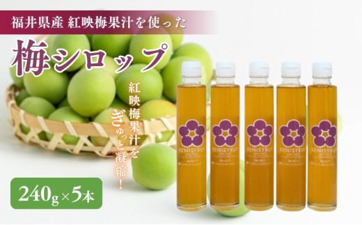 | 容量 | 薄めて飲むタイプの梅シロップ(240g)を5本。福井県産紅映梅果汁を使用。 |