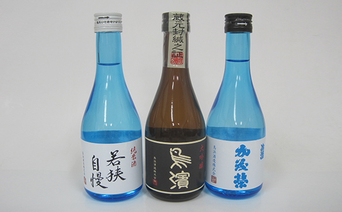 | 容量 | 鳥濱(大吟醸)300ml×1本、若狭自慢(純米酒)300ml×1本、冷酒加茂栄(本醸造)300ml×1本 ※無地の段ボール箱に入れてのお届け 原材料 【鳥濱大吟醸】米(国産)、米麹(国産米)、醸造アルコール 【若狭自慢】米(国産)、米麹(国産米) 【冷酒加茂栄】米(国産)、米麹(国産米)、醸造アルコール |
