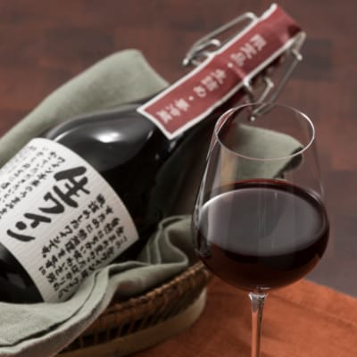 コンコード種赤ぶどうの香りが強く、甘味のある原料を使用して、ぶどう本来のフレッシュでフルーティーな中にも、コクのある自然にちかい味わいを残すために生詰めした、要冷蔵赤ワインです。