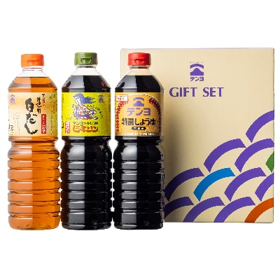 | 容量 | ■お礼品の内容について ・テンヨの料理用白だし[1L×1本] 製造地:山梨県 賞味期限:製造日から12ヶ月 ・テンヨのだしつゆビミサン[1L×1本] 製造地:山梨県 賞味期限:製造日から12ヵ月 ・テンヨ特選しょうゆ[1L×1本] 製造地:山梨県 賞味期限:製造日から18ヶ月 ■原材料・成分 テンヨの料理用白だし 食塩、砂糖、しょうゆ、ふし(かつお、そうだがつお)、にぼし、かつお酵素分解物、昆 布/ アルコール、調味料(アミノ酸等)、(一部に小麦・大豆を含む) テンヨのだしつゆビミサン しょうゆ(国内製造)、糖類(砂糖、砂糖混合ぶどう糖果糖液糖)、たん白加水分 解物、食塩、ふし(かつお、そうだがつお) / アルコール、調味料(アミノ酸等)、 カラメル色素、(一部に小麦・大豆を含む) テンヨ特選しょうゆ 脱脂加工大豆(遺伝子組換えでない)、小麦、食塩/ アルコール |