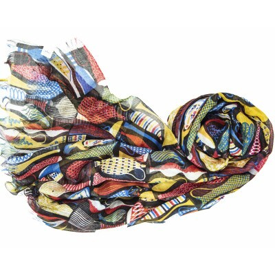 遊び心溢れる陶器柄「ポテリー」マルチカラーは、普段着にさらっと巻くだけでコーディネートをポップで華やかな印象に。大判サイズなのでスタンダートに巻いたり、オシャレなミラノ巻きも出来たり、また、生地がとても薄いので三角形にしてアフガン巻きや肩口に羽織ったりなどいろいろな使い方ができる万能サイズになっております。