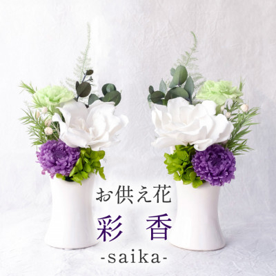 <仏花>プリザーブドフラワー お供え花「彩香」陶器の花器付きアレンジ 一対 枯れないお花 お仏壇用に【1601377】