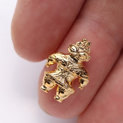 K18製で眩い光を放っているかのような遮光器土偶、細かいディテールもそのままでしっかりと重みを感じられます。