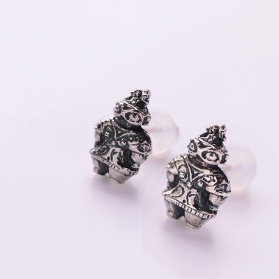 大きさ約11mmの遮光器土偶のミニサイズピアス。細かいディテールもそのままで顔のサイズは4mmほど。