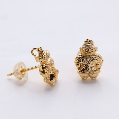 縄文の神秘を身にまとうK18製 コメ遮光器土偶ピアス 700-084【1670960】