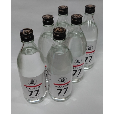 笹一酒造では各関係省庁のご指導のもと、「笹一アルコール77」を製造しました。