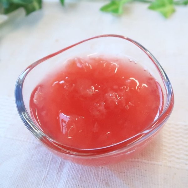 梨:山梨県産の梨を使用したクラッシュゼリーです。梨特有の食感、甘さをお楽しみください。冷たくすると、より美味しくお召し上がりいただけます。