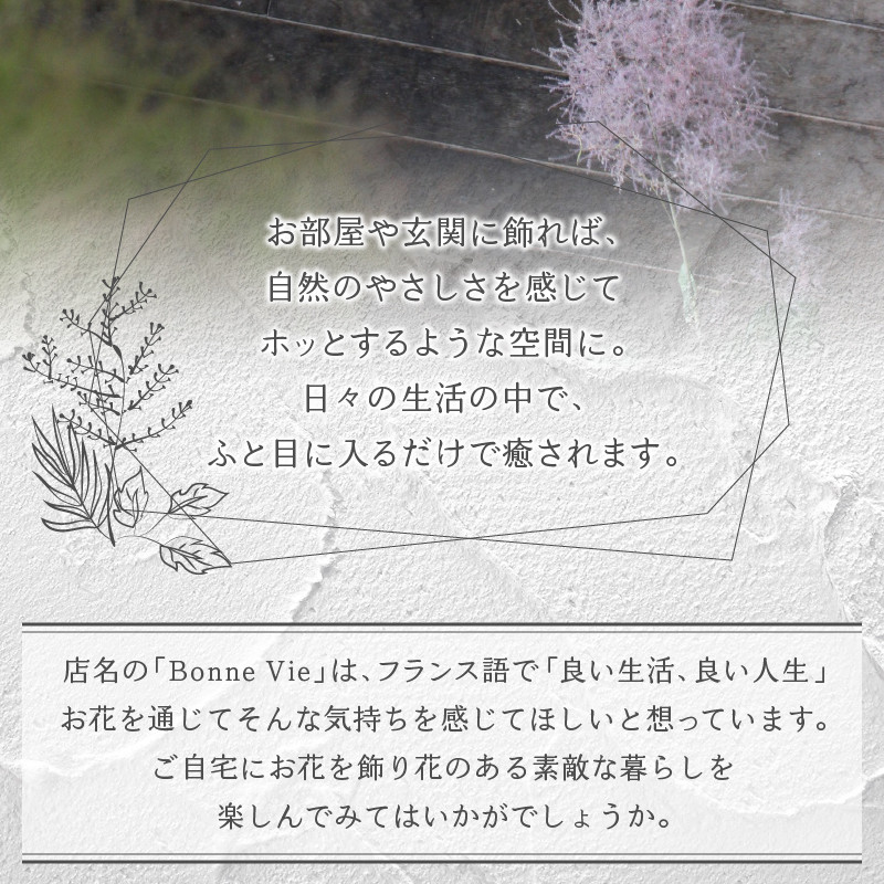 お部屋や玄関に飾れば、自然のやさしさを感じてホッとするような空間に。