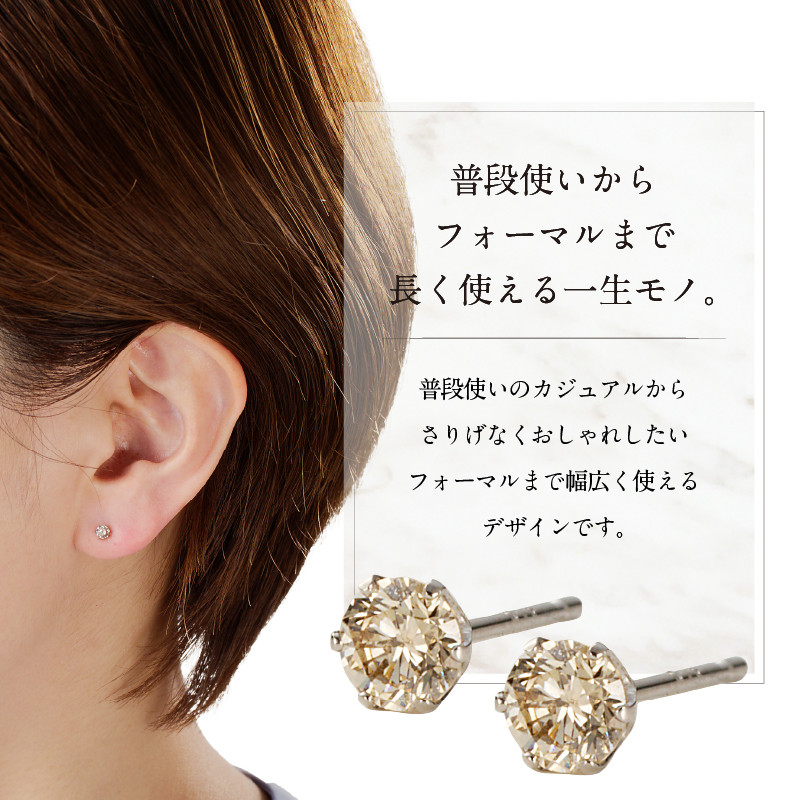 定番のシンプルな6本爪のスタッドピアス。トータル0.30ctのダイヤがキラキラと輝きます。カジュアルからフォーマルまで幅広く使えるデザインです。