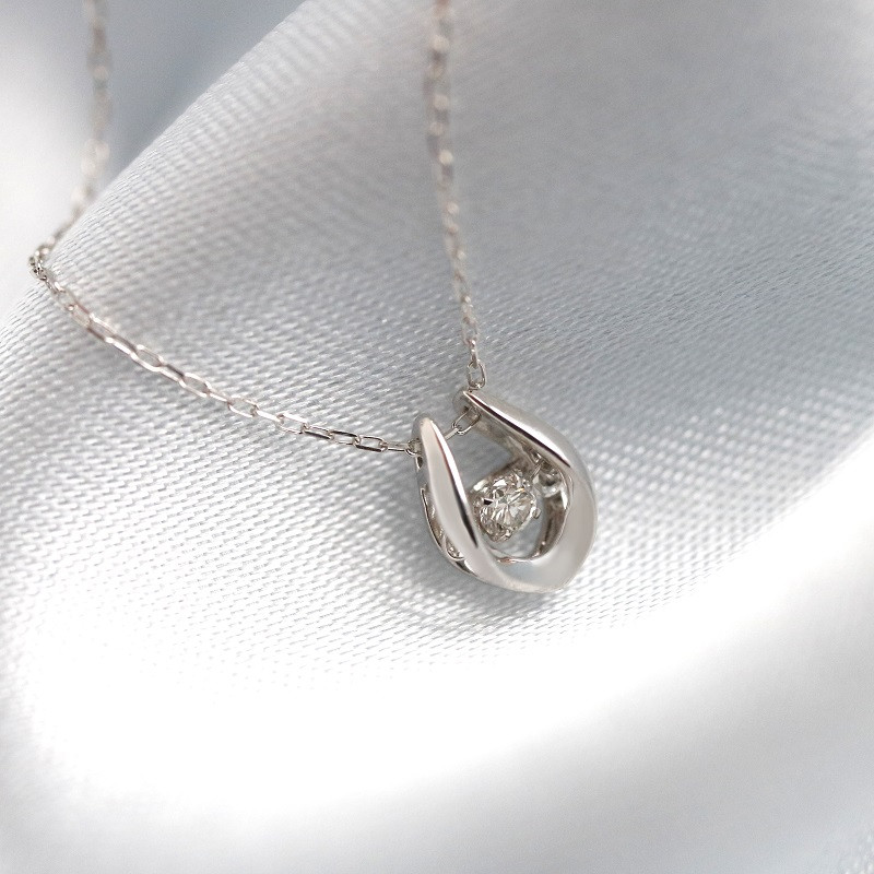 プレゼントに大人気!話題のジュエリー「Dancing Stone」 〈 甲府ジュエリー 〉ダンシングストーンダイヤペンダント(ネックレス)【horse shoe】プラチナ・0.03ct シンプル (FTW-2138)