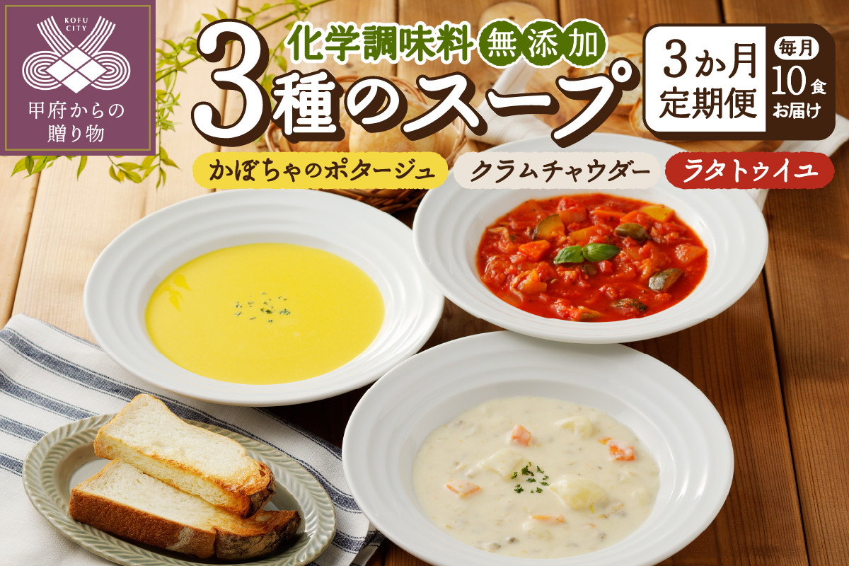 スープ 無添加 レトルト 詰合せ 3種 セット 3ヶ月定期便 自然派 自家製 冷凍 新鮮 かぼちゃ ポタージュ クラムチャウダー ラタトゥイユ 健康 ヘルシー 1人前 定期便 3ヶ月 10食分