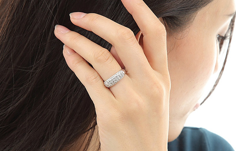 また、パヴェリングは通常の指輪に比べて高さが出ないため、お洋服に悪戯しにくいデザインでもありますので、普段使いしやすいリングでもあります。