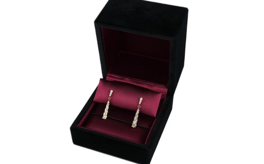良質のダイヤモンドをグラデーションに留めたピアスです。シンプルなデザインがどんな洋服とも合わせやすく、ダイヤのきらめき感が華やかさを演出してくれます。動きに合わせて耳元で揺れるダイヤはとってもキレイです。山梨県甲府市は全国でも有数のジュエリーの産地です。たくさんの業者、職人が日々技術を磨き、消費者の方々が喜んでいただけるよう努力し製品を作っています。