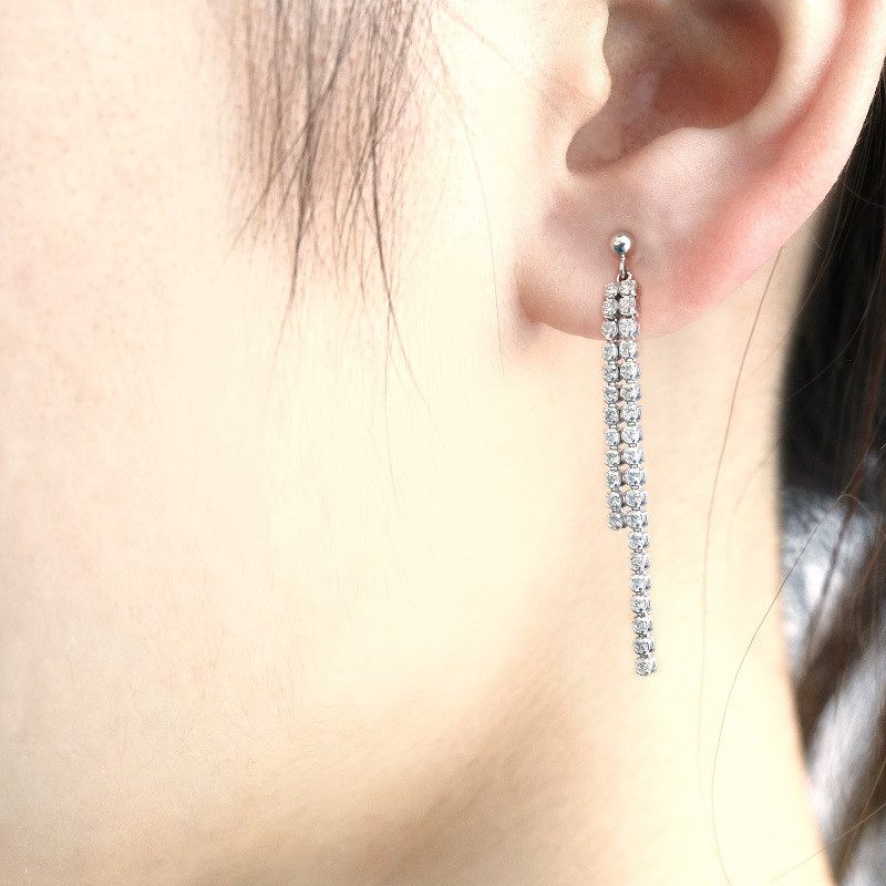 プレゼントに大人気!シンプルでなめらかなテニスチェーンジュエリー 〈 甲府ジュエリー 〉テニスチェーンピアス【flow thread】プラチナ・0.80ct TE-1049
