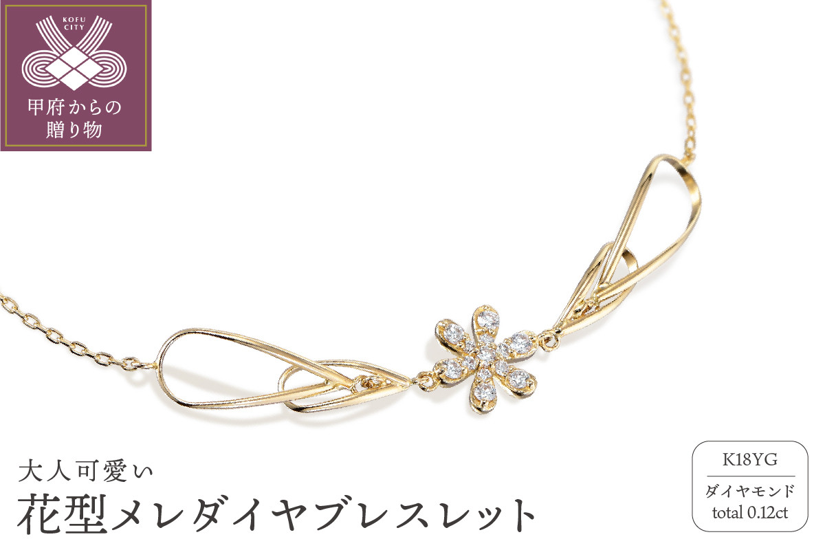〈 甲府ジュエリー 〉ブレスレット ジュエリー レディース アクセサリー K18 ゴールド 0.12ct 花型 メレ ダイヤ K18YG 鑑別書付 保証書付