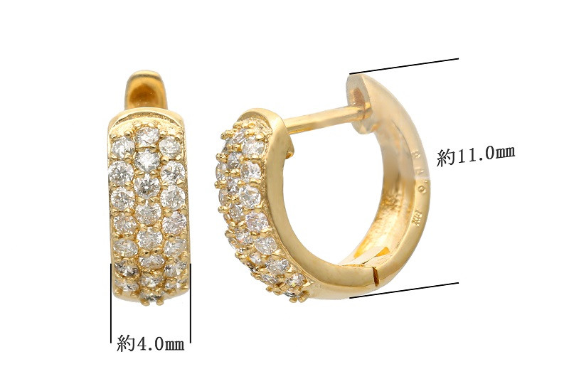 K18イエローゴールドの合計0.3ctのダイヤモンドを使ったパヴェピアスです