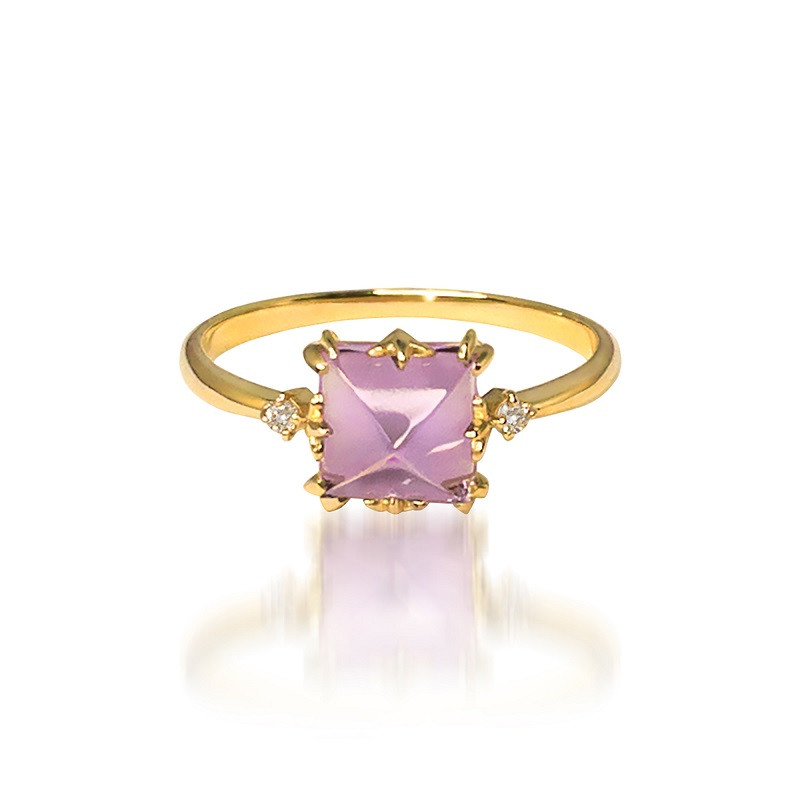 こだわりのあるカッティングのアメジストはシンプルなデザインにしたことで魅力が引き立ちます。天然石を気軽にお楽しみ頂けるリングです。