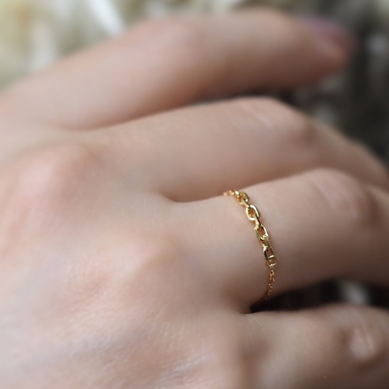 少しボリュームのある小豆チェーンを中央部分にデザインしたリング。