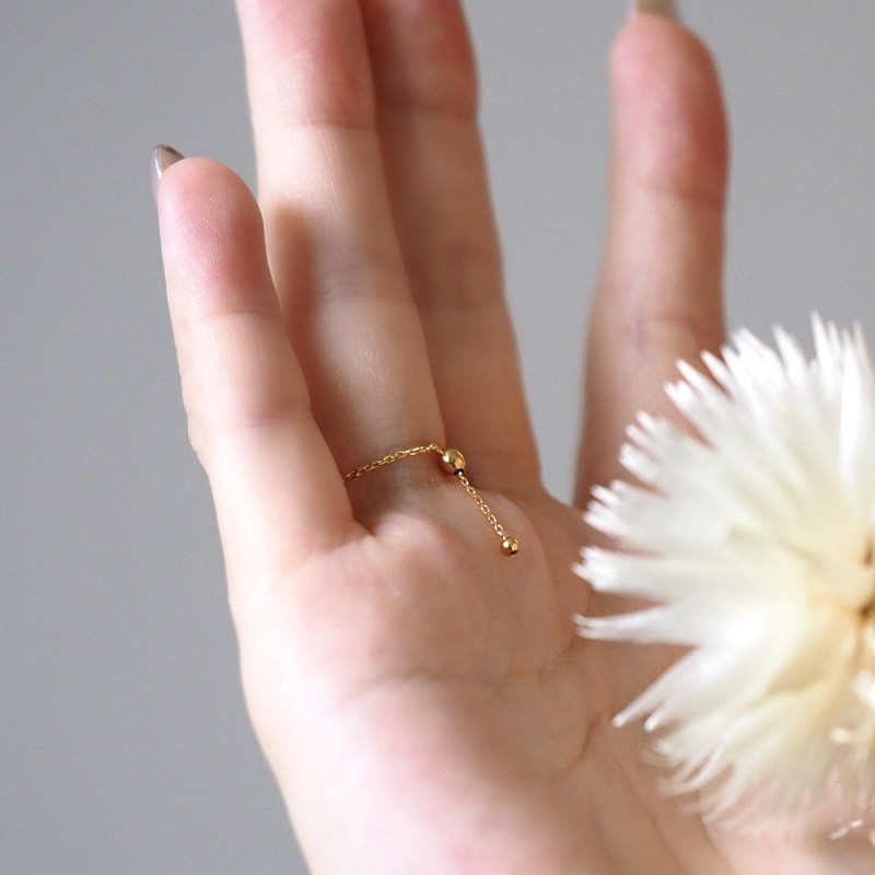 シンプルに普段使いできるデザインになっていて、スライド式のフリーサイズなのでどの指にもフィットします。