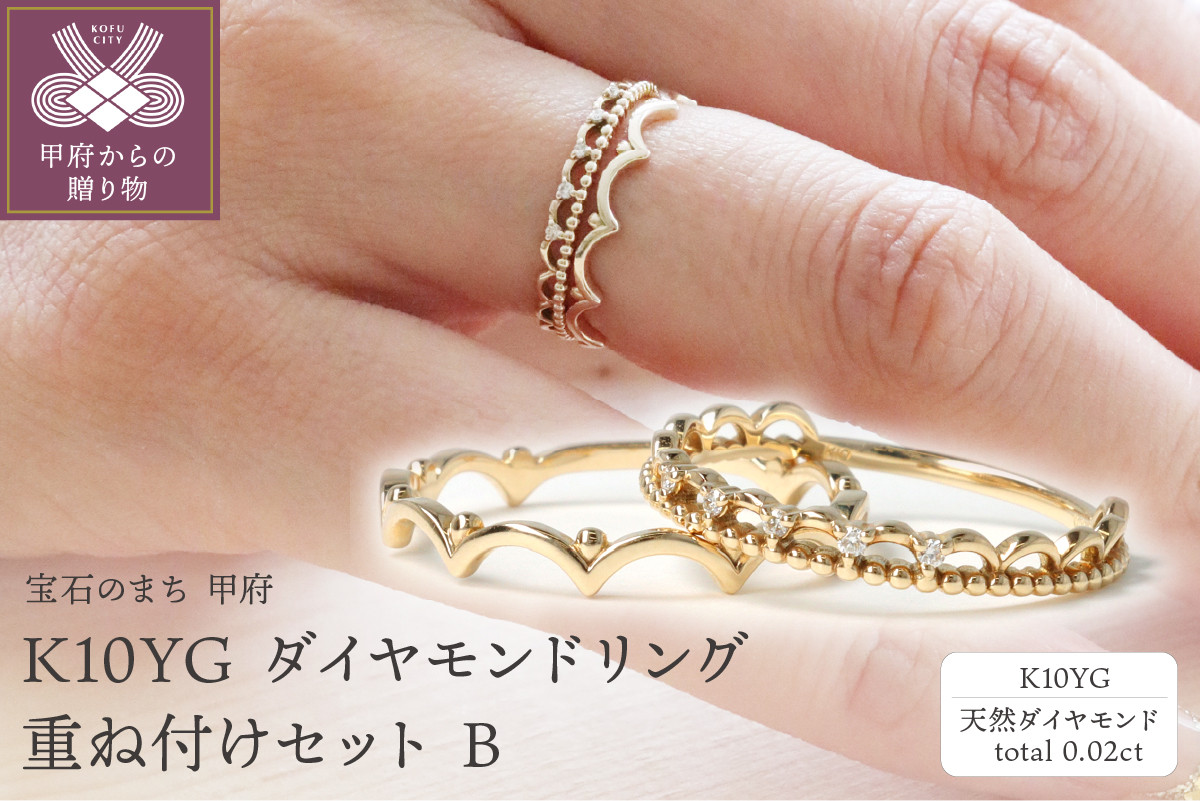 K10YGリング 重ね付けセット B 〈 甲府ジュエリー 〉K10YG ダイヤモンドリング 重ね付けセット B、S-4383+S-4379【サイズ:7号~15号※1号刻み】