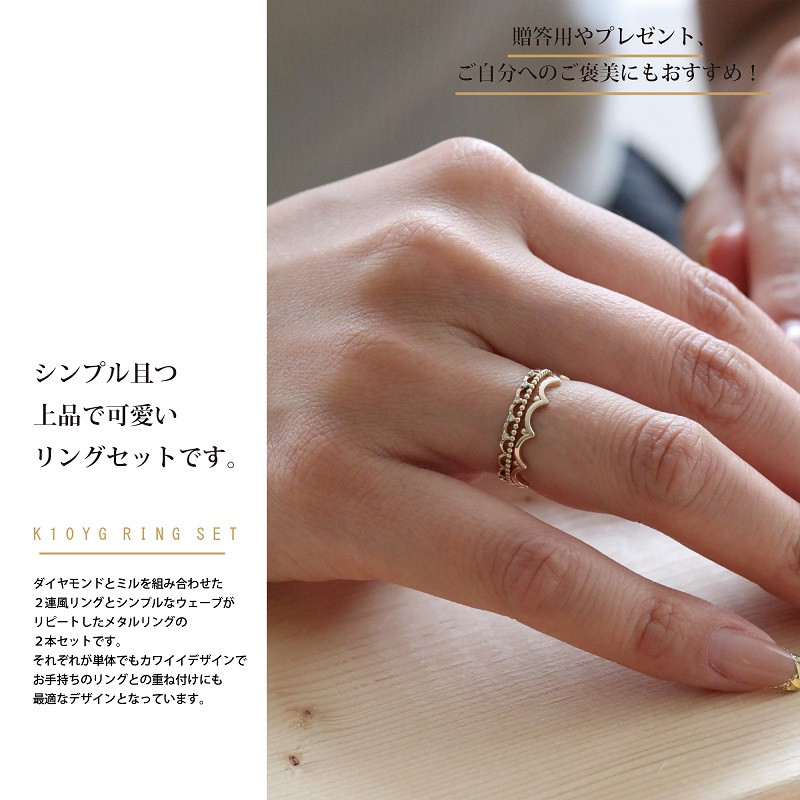 〈 甲府ジュエリー 〉リング 指輪 レディース ジュエリー アクセサリー ダイヤモンド 0.02ct イエローゴールド K10 YG メタルリング 重ね付け セット ギフト プレゼント 専用ケース 鑑別書付 保証書付