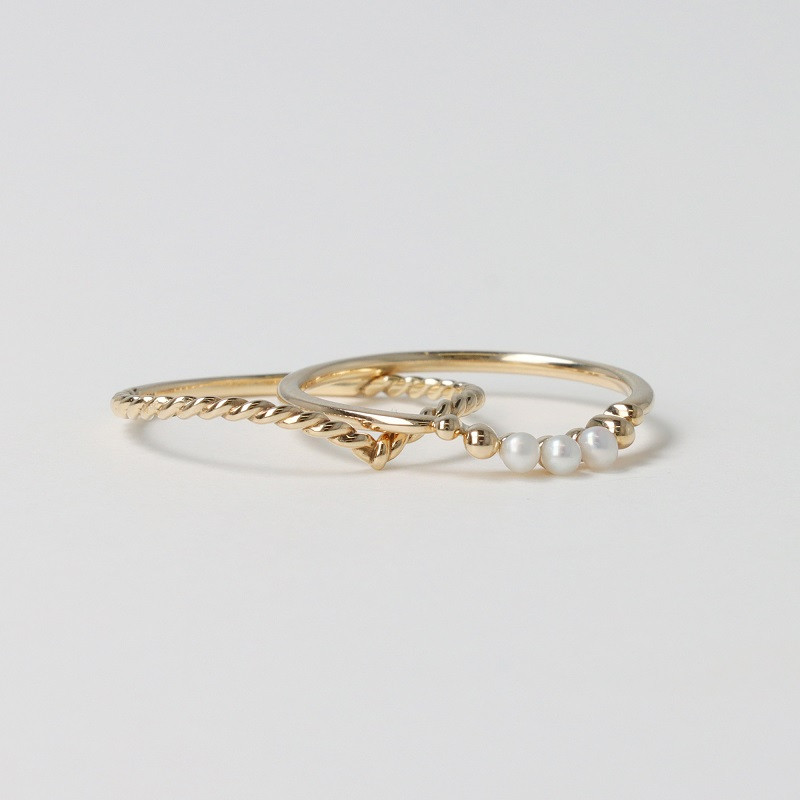 K10YGリング 重ね付けセット C 〈 甲府ジュエリー 〉K10YG 淡水パールリング 重ね付けセット C、S-4390+S-4751【サイズ:7号~15号※1号刻み】