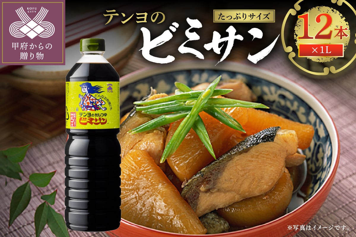 | 容量 | 【内容】 ・テンヨのビミサン たっぷりサイズ 1L×12本 【原材料】 ・しょうゆ(国内製造)、糖類(砂糖、砂糖混合ぶどう糖果糖液糖)、たん白加水分解物、食塩、ふし(かつお、そうだがつお)/アルコール、調味料(アミノ酸等)、カラメル色素、(一部に小麦・大豆を含む) |
