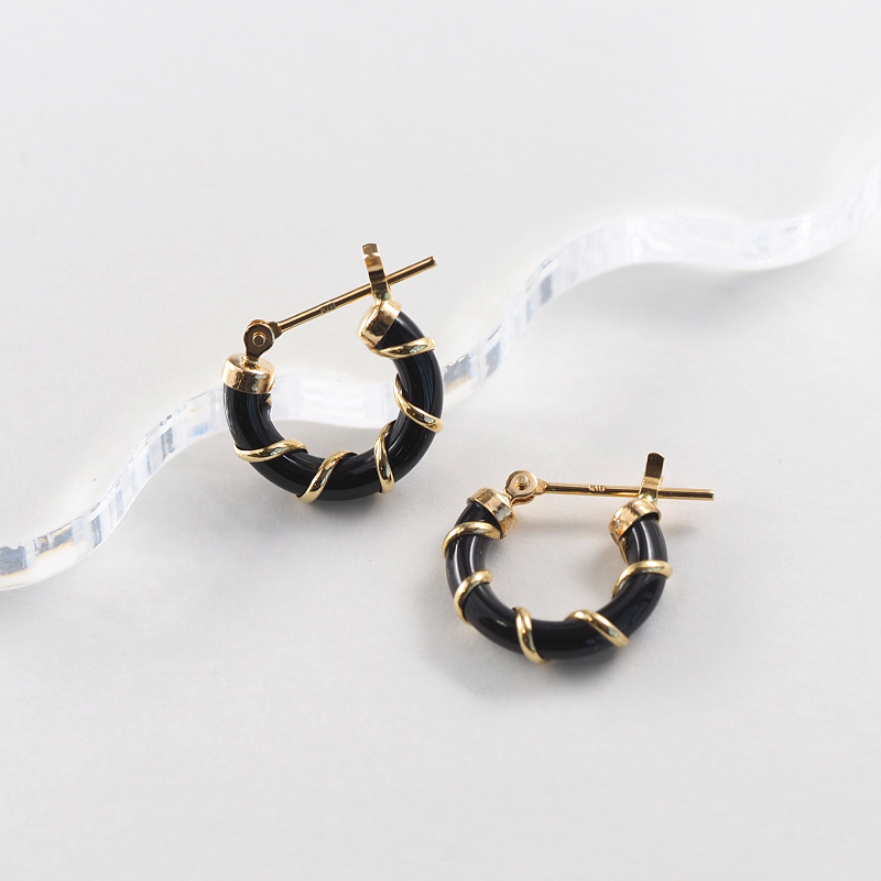 小ぶりのオニキス ピアス 〈 甲府ジュエリー 〉K18 noir/ノワール ピアス(14882)