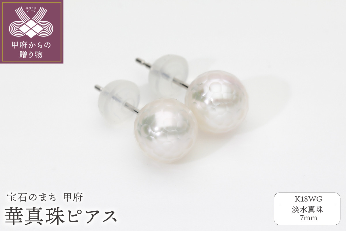「内閣総理大臣賞受賞」華真珠ピアス 〈 甲府ジュエリー 〉「みんなで宝石のまち甲府をPR!」(社)宝石のまち甲府会議出品 K18WG 華真珠ピアス(淡水真珠7ミリ) 0001