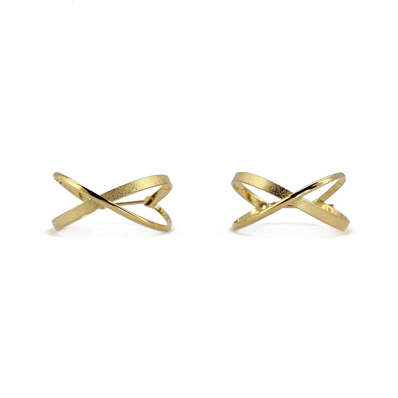 こなれ感をプラスしてくれるフープピアス 〈 甲府ジュエリー 〉K18 ゴールド クロッシング クロスフープピアス GD-3058