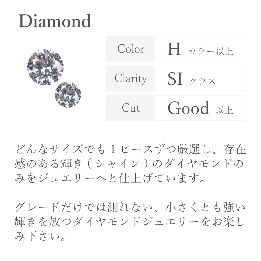 | 容量 | 【内容】 ・ペンダント 1本 ・ジュエリーケース付き ・カード型保証書 【原材料】 ・18金イエローゴールド ・天然ダイアモンド(0.03ct) 【ダイアモンド】 ・ラウンドブリリアントカット ・Hカラー ・トータル0.03ct ・SIクラス 【チェーン】 ・18金イエローゴールド0.6φ ・45cm ・スライド付き 【トップ】 ・約1.2cm 【同梱の付属品】 ・保証書付 ※鑑定書・鑑別書は付きません。(ご了承の上お申込みください) 【ラッピング対応】 ・ご希望の方は備考欄に“ラッピング希望”とご記入ください。 |