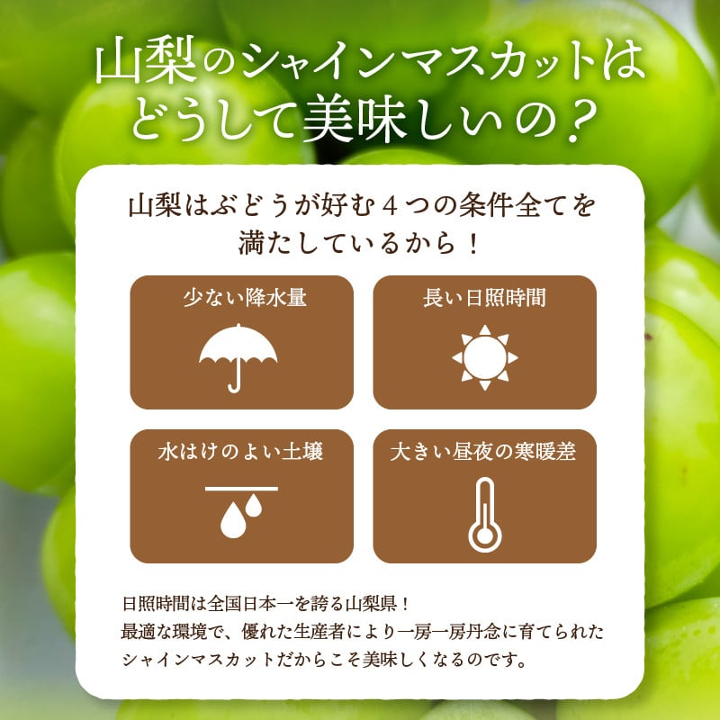 ぶどう生産量日本一のフルーツ王国やまなしより、自慢のシャインマスカットをお届け!
