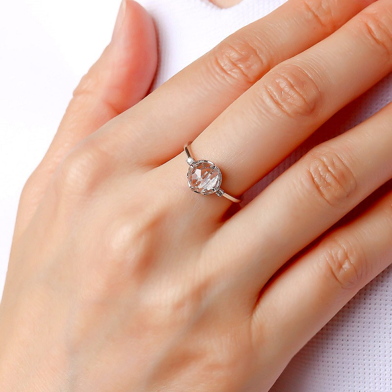 【特許】うるうる煌めく天然石ジュエリー。 〈 甲府ジュエリー 〉K10WG クリアクォーツ フラワーカット ダイヤモンドリング MINAMOセッティング VO0024RCQ【サイズ:6号~20号※0.5号刻み】
