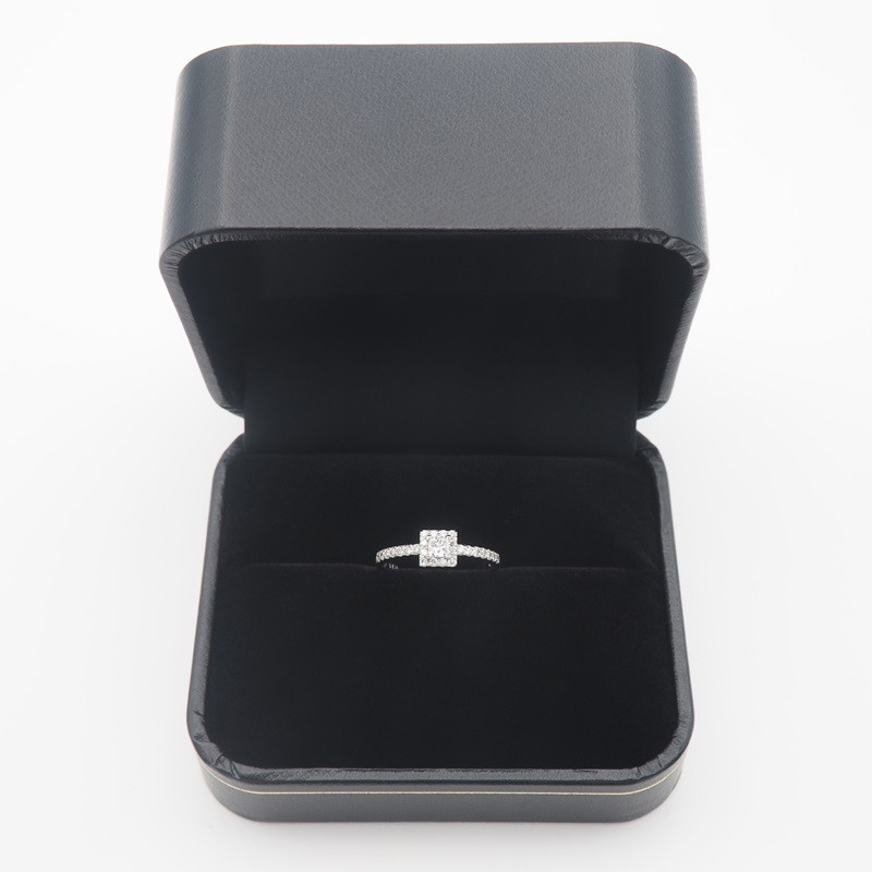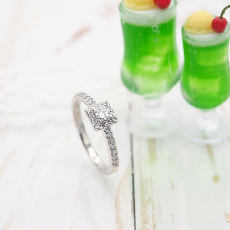 センターストーンに厳選された綺麗なプリンセスダイヤモンドを1石使ったエレガントなリング。
