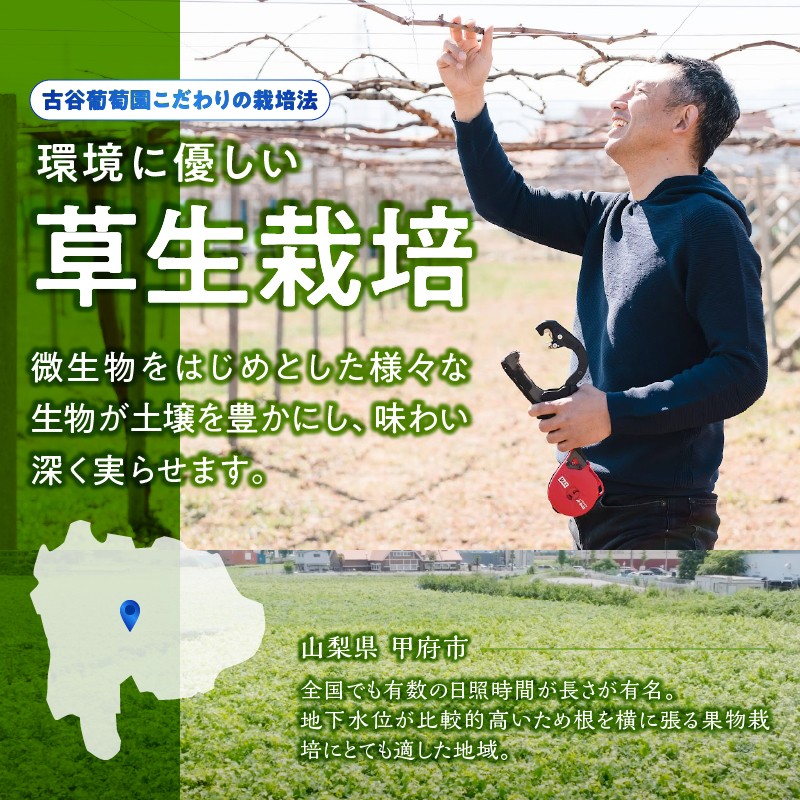 古谷葡萄園では産地特有の好環境に加え、30年前より草生栽培を行っております。