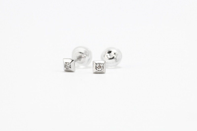 シンプルで使いやすいブロックピアス 〈 甲府ジュエリー 〉Pt900 BLOCKデザイン プチダイヤ スタッド ピアスGD-3075PT