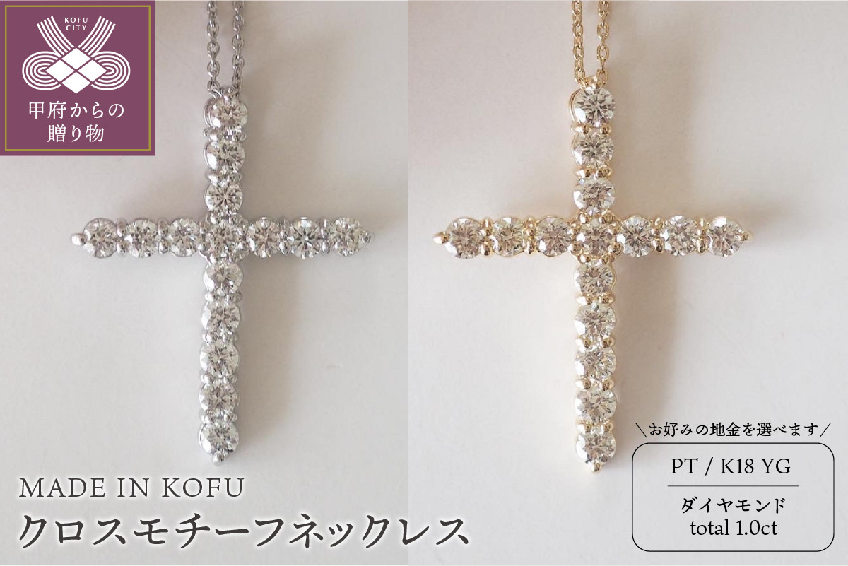 〈 甲府ジュエリー 〉ネックレス ペンダント ダイヤモンド レディース ジュエリー アクセサリー 1.0ct クロス プラチナ イエローゴールド ジュエリーケース付 鑑別書付 保証書付