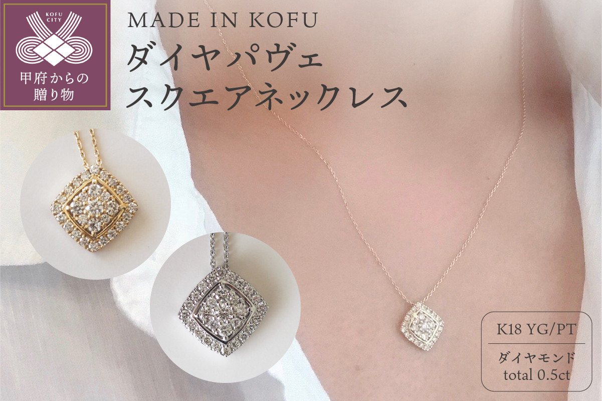 凛としたラグジュアリーな輝き 〈 甲府ジュエリー 〉[MADE IN KOFU]ダイヤパヴェスクエアネックレス【選べる地金】