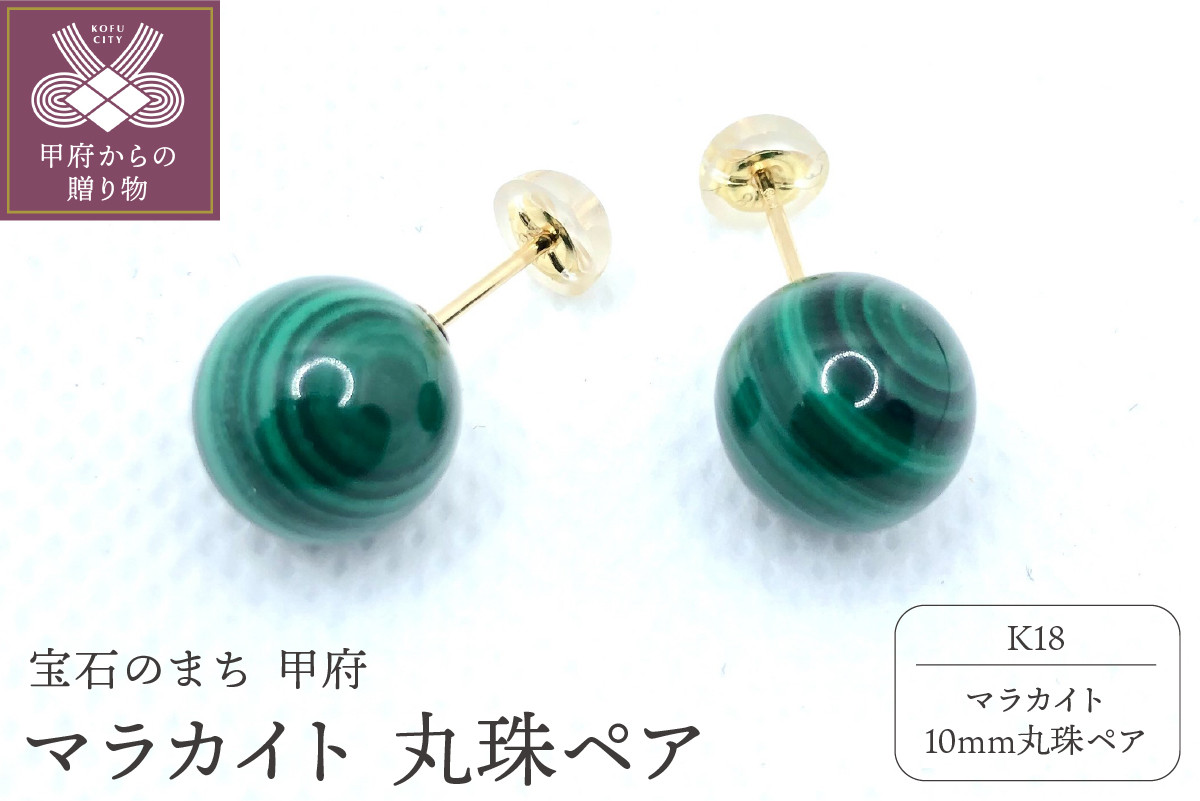 〈 甲府ジュエリー 〉K18 マラカイト 10mm 丸珠 ピアス YF-26