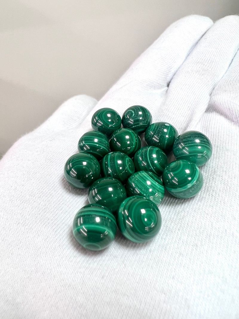 こちらは美しい緑色で「孔雀石」とも呼ばれるマラカイトのピアスです。深い緑色と天然ならではの縞模様が特徴でお顔回りに華やかさと、クールで落ち着いた印象も与えます。一珠一珠の色味と模様は全て異なり様々な表情を見せる天然石です。K18パーツにはシリコンゴム付きキャッチを使用し肌触りも優しくパーツの劣化も防ぎます。どのような珠がご自身のお手元に届くか心待ちにしていただき、実際のお色味と模様の表情、丸珠の美しさをぜひ楽しんでご愛用ください。全身の装いのポイントにもなるような美しい緑色をご堪能くださいませ。