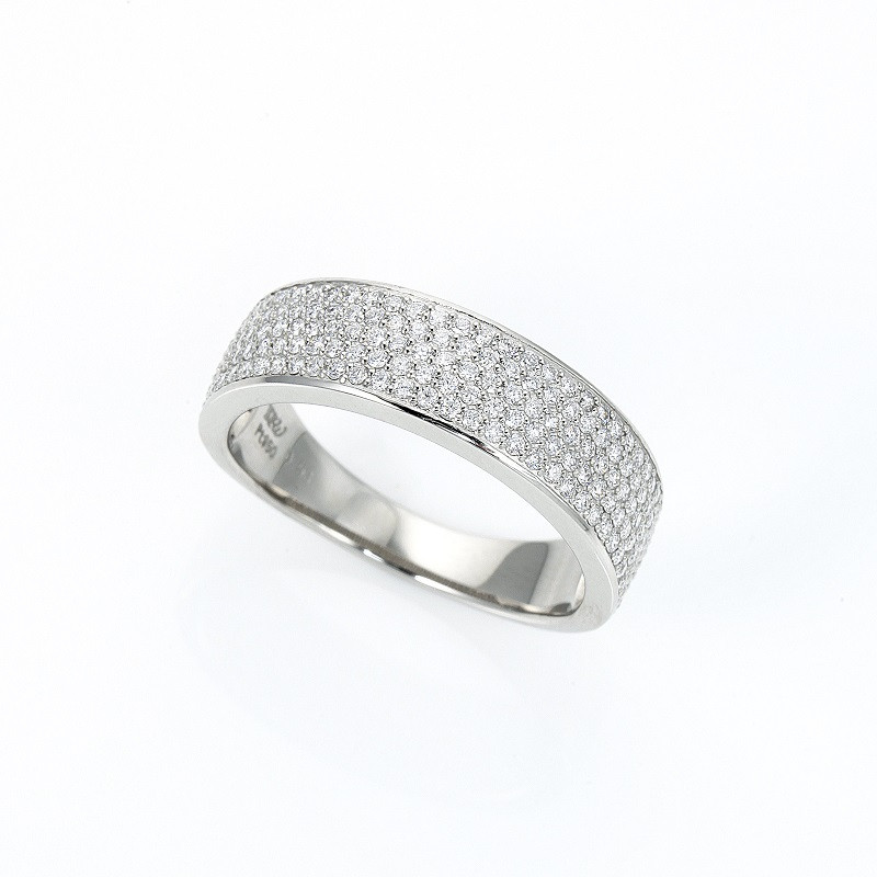 天然ダイヤモンド169石(トータル0.50ctアップ)を隙間なく石畳のように1粒1粒丁寧にセットしたゴージャス感あふれるパヴェリングです。美しい白い輝きを放つKoo-fu(クーフー)地金プラチナ950とマッチしてラグジュアリーな輝きをお楽しみいただける贅沢なジュエリーです。重厚なボディは指なじみも良く存在感も抜群です。ご自身に、また記念日、クリスマス、誕生日のプレゼントにもどうぞ。