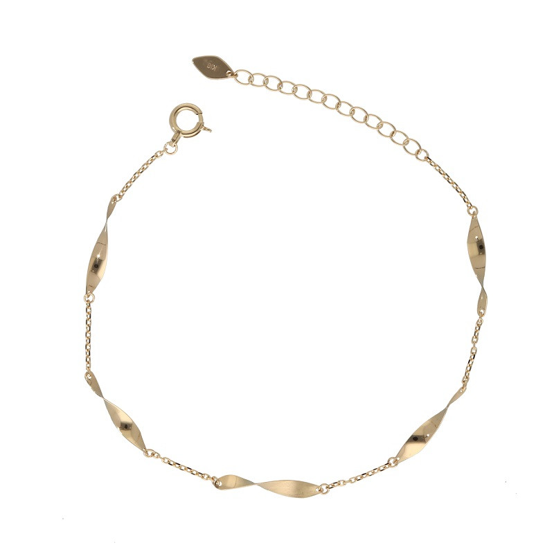ゴールドプレートの表裏を鏡面とマットでテクスチャーを変え、捻りを加えたパーツを繋ぐことで輝きに変化が生まれるお洒落なブレスレット。