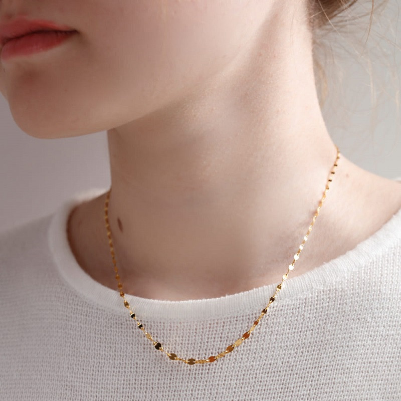18金の高級感 シンプルモダンなナチュラルゴールドネックレス