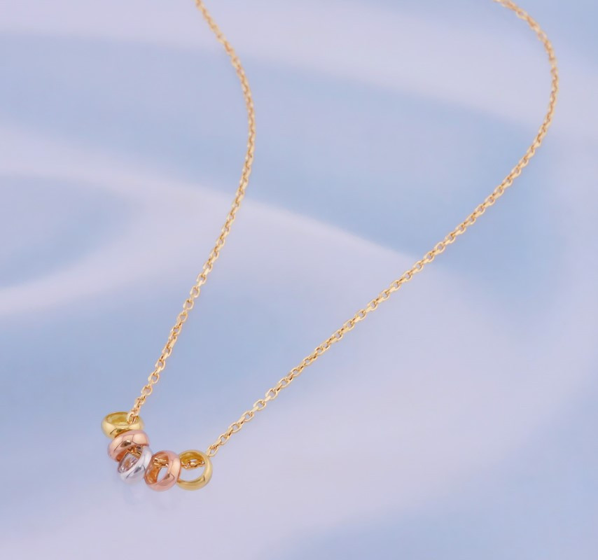幸せを運ぶラッキーリングネックレス 〈 甲府ジュエリー 〉K18 ラッキーリング ネックレス(5リング45cm)K05061-H