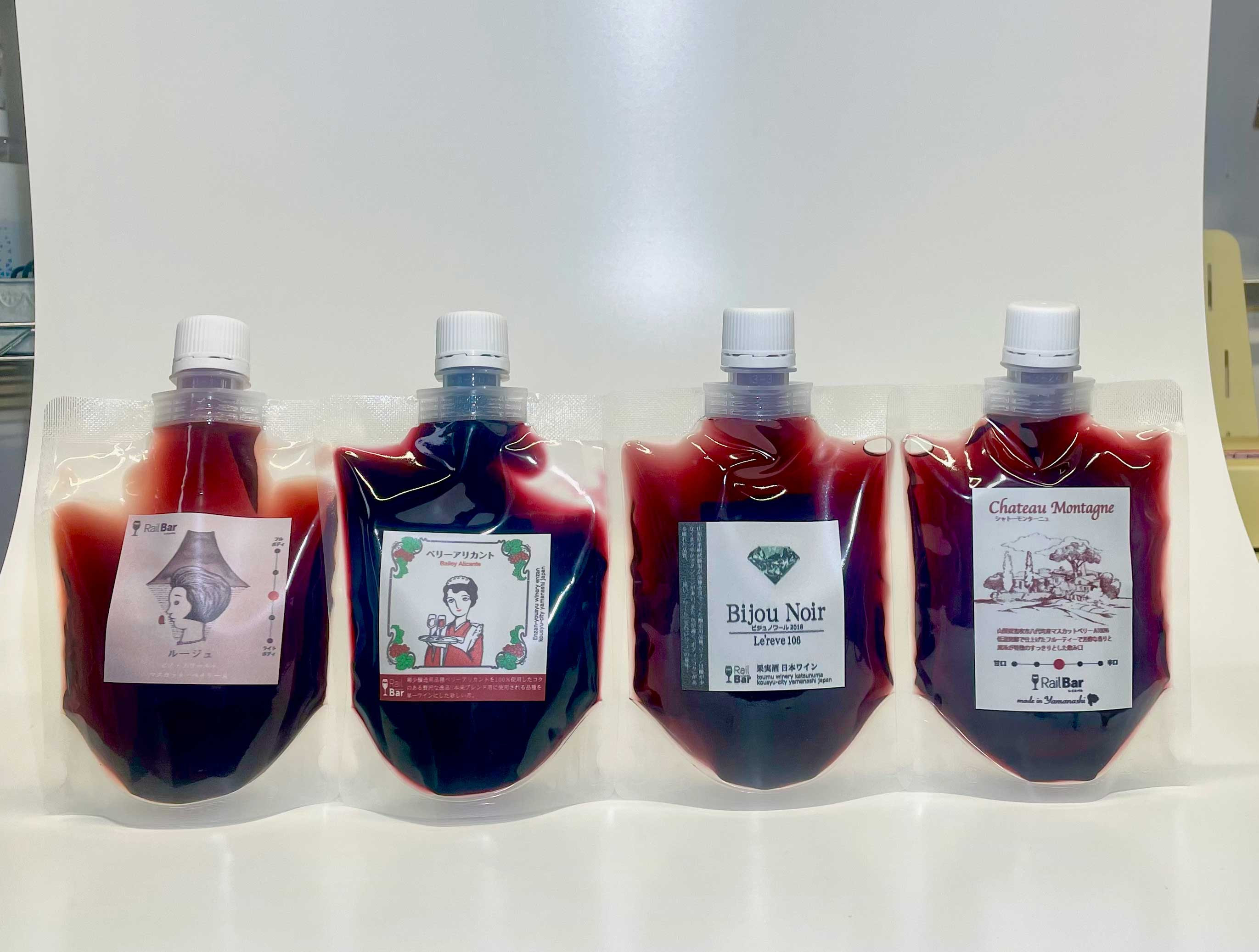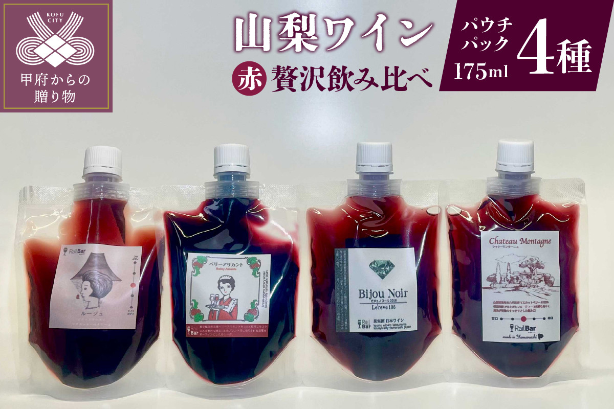 ワイン 山梨ワイン パウチワイン 飲み比べ ルージュQ ビジュノワール ベリーアリカント シャトーモンターニュ 175ml 赤4種 贅沢 セット