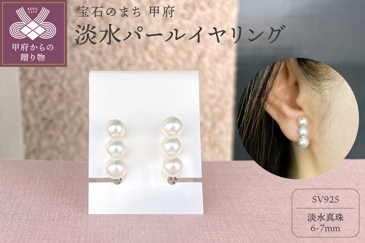パール縦1列デザインをイヤリングで 〈 甲府ジュエリー 〉SV925 淡水パールイヤリング FE1 K05084-C