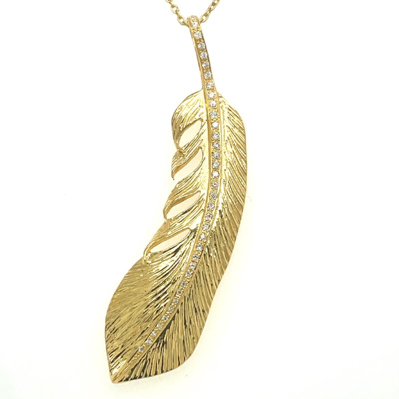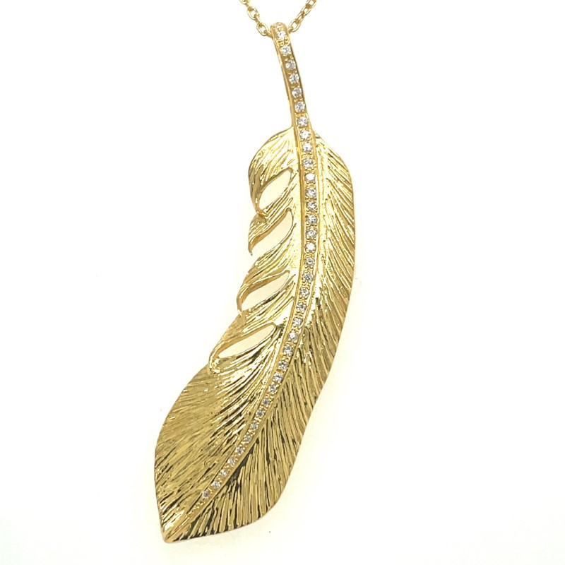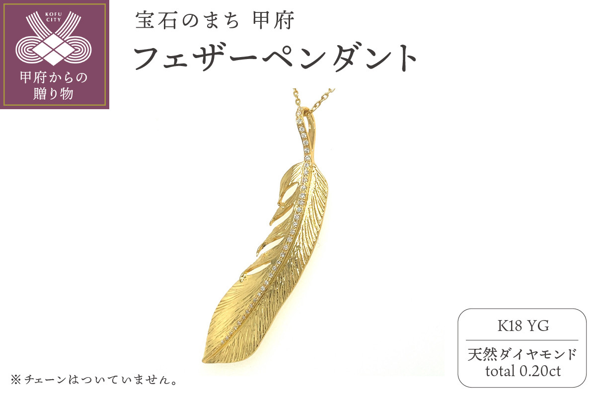 〈 甲府ジュエリー 〉ペンダント ネックレス ジュエリー レディース メンズ アクセサリー 天然 ダイヤモンド 0.20ct K18 イエローゴールド フェザーデザイン ギフト プレゼント ジュエリーケース付 鑑別書付 保証書付
