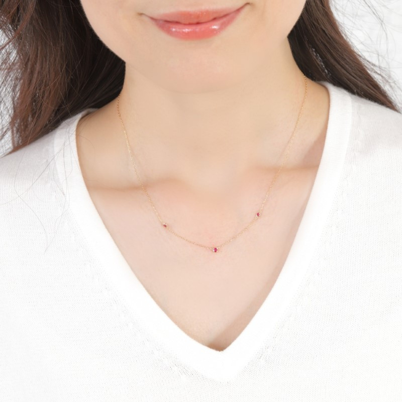 星のような輝きのスキンジュエリー 〈 甲府ジュエリー 〉K18 ルビー ネックレス 28537