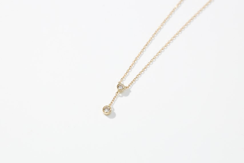 シンプルに2ピースのダイヤが入った日常使いしやすいネックレス。